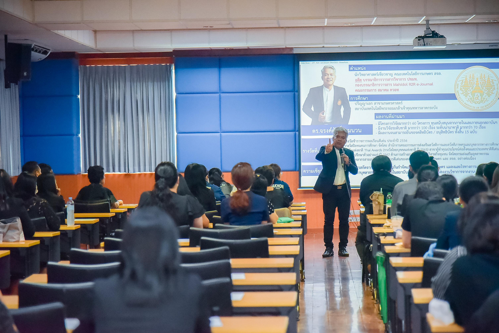 โดยได้รับเกียรติจาก ดร.จรงค์ศักดิ์ พุมนวน นักวิทยาศาสตร์เชี่ยวชาญ คณะเทคโนโลยีการเกษตร สถาบันเทคโนโลยีพระจอมเกล้าเจ้าคุณทหารลาดกระบัง เป็นวิทยากร ถ่ายทอดความรู้ บรรยายการอบรมในครั้งนี้