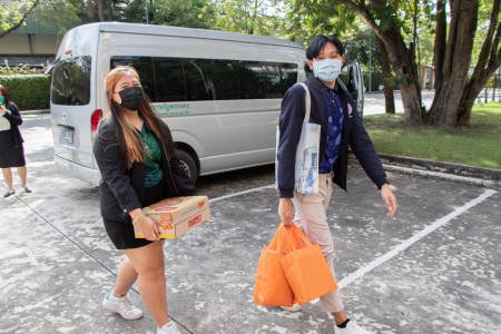 มหาวิทยาลัยราชภัฏพระนครได้นำของบริจาคในโครงการ "องค์การนิสิตนักศึกษาร่วมใจ