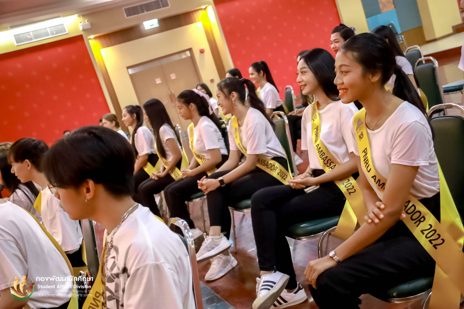 กิจกรรมการอบรมพัฒนาศักยภาพด้านบุคลิกภาพและกิจกรรมกลุ่มสัมพันธ์ ให้กับผู้เข้าประกวดทูตกิจกรรมมหาวิทยาลัยราชภัฏพระนคร (PNRU Ambassador) ครั้งที่ 6 ประจำปีการศึกษา 2565 ณ หอประชุมพิฆเนศวร