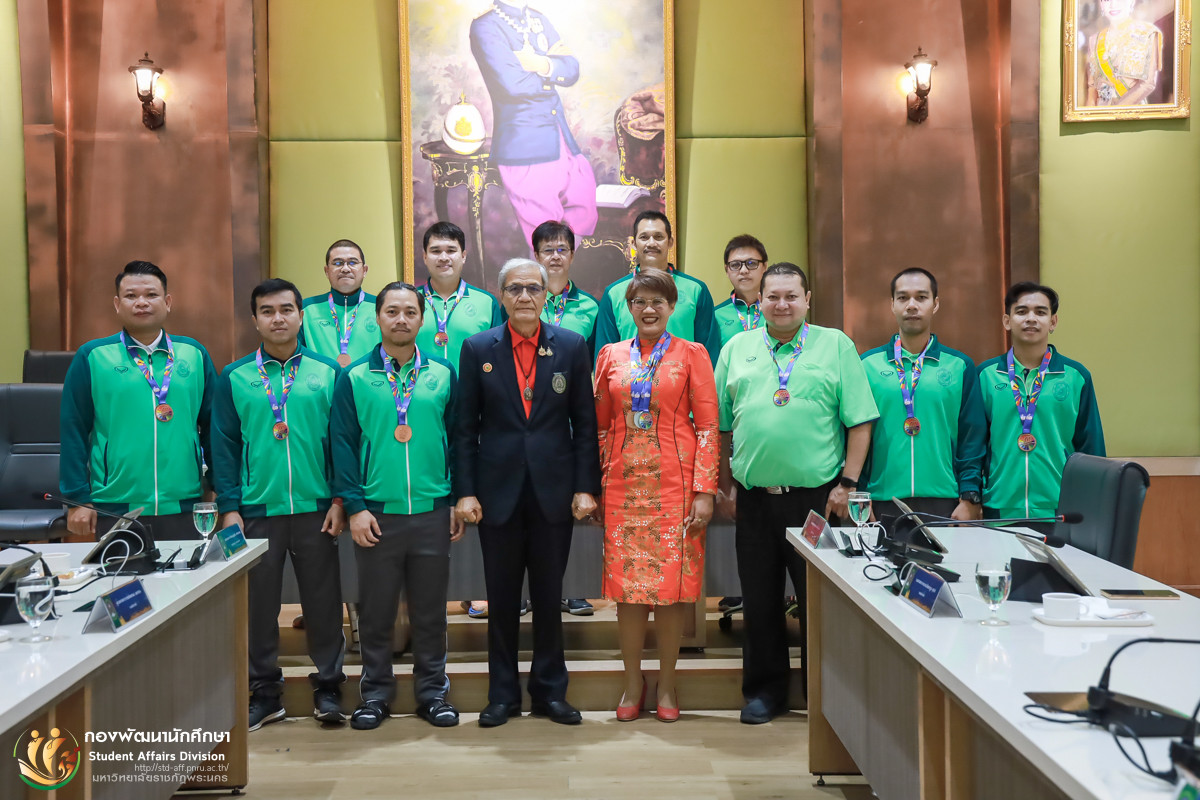 พิธีมอบเหรียญรางวัลแก่นักกีฬาบาสเกตบอล และนักกีฬาว่ายน้ำ ในการจัดแข่งขันกีฬาบุคลากรมหาวิทยาลัยแห่งประเทศไทย ครั้งที่ 40 “อ่างแก้วเกมส์ 2024” ณ ห้องประชุมสมันตเนตรอาคาร 4 ชั้น 8 มหาวิทยาลัยราชภัฏพระนคร