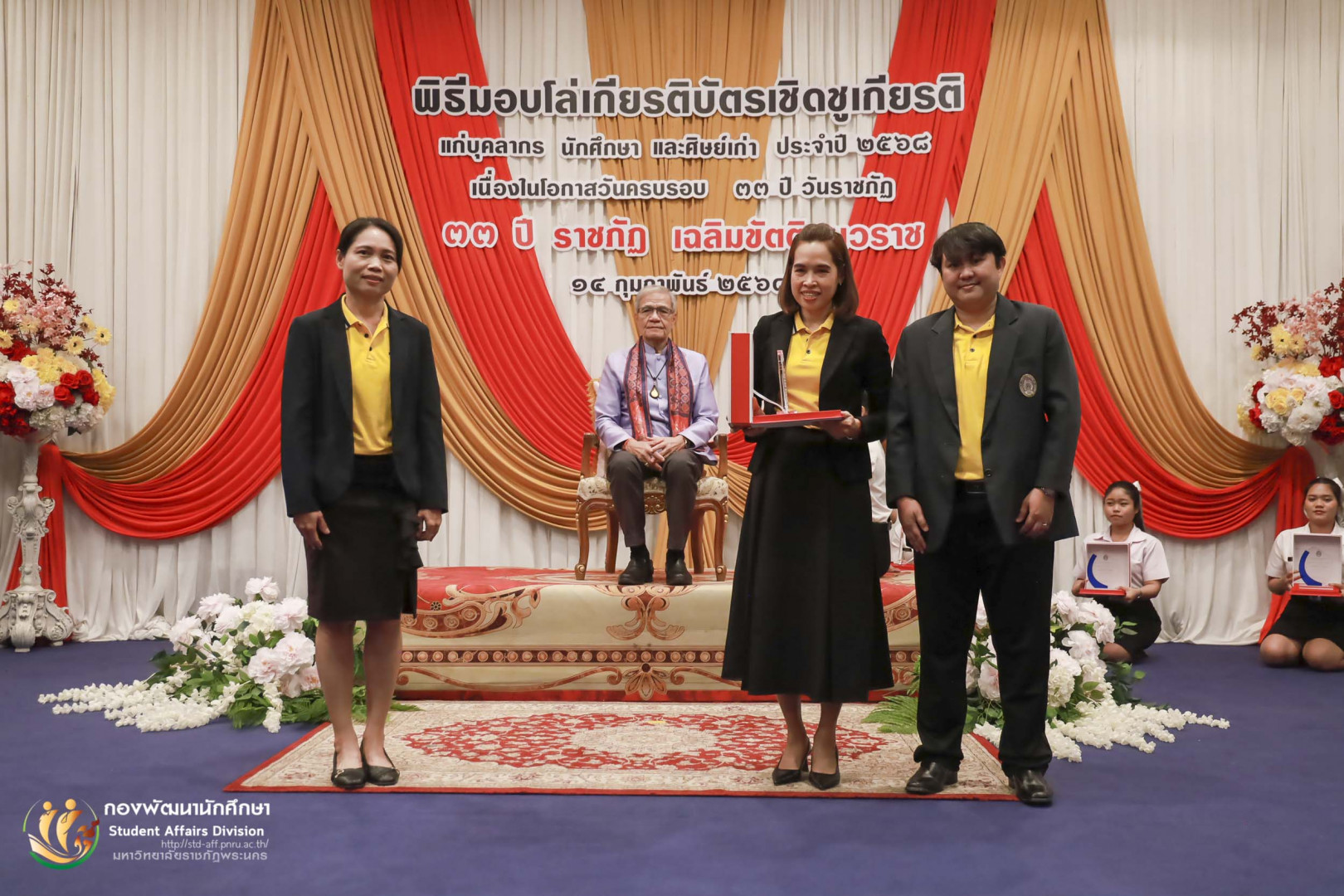 วันที่ 14 กุมภาพันธ์ 2568 กองพัฒนานักศึกษา มหาวิทยาลัยราชภัฏพระนคร ได้จัดพิธีมอบโล่และเกียรติบัตรเชิดชูเกียรติแก่บุคลากร นักศึกษา และศิษย์เก่า ประจำปี 2568 เนื่องในโอกาสครบรอบ 33 ปี วันราชภัฏ เฉลิมขัตติยนวราช ณ ห้องประชุมสมเด็จพระมหาวีรวงศ์ 1 อาคารเรียนรวมและศูนย์วัฒนธรรม (พุทธวิชชาลัย) มหาวิทยาลัยราชภัฎพระนคร