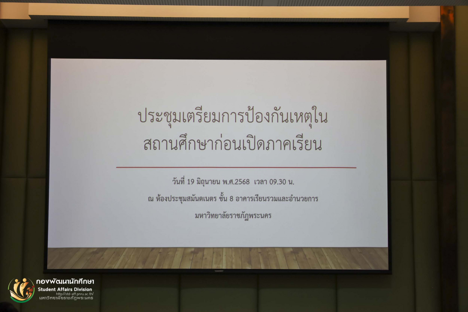 การประชุมหารือเรื่อง “การเตรียมการป้องกันเหตุในสถานศึกษาก่อนเปิดภาคเรียน ประจำปีการศึกษา 2568” ณ ห้องประชุมสมันตเนตร ชั้น 4 อาคารเรียนและอำนวยการ มหาวิทยาลัยราชภัฏพระนคร