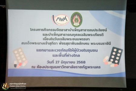 โครงการกิจกรรมจิตอาสาบำเพ็ญสาธารณประโยชน์และบำเพ็ญสาธารณกุศลเฉลิมพระเกียรติ เนื่องในวันเฉลิมพระชนมพรรษา สมเด็จพระนางเจ้าสุทิดา พัชรสุธาพิมลลักษณ พระบรมราชินี โดยกิจกรรมจิตอาสา “แยกยา”