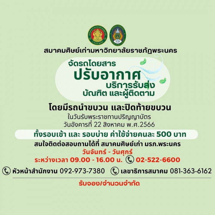 ขอเชิญบุคลากรมหาวิทยาลัยราชภัฏพระนคร ตรวจสุขภาพประจำปี 2567
