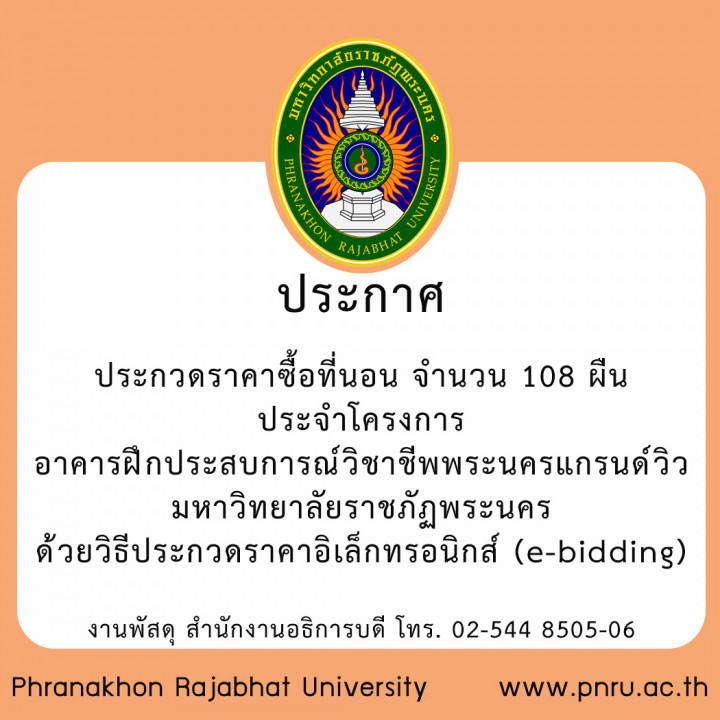 ประกาศราคากลางงานจ้างออกแบบโครงการปรับปรุงพื้นที่อาคารพุทธวิชชาลัย มหาวิทยาลัยราชภัฏพระนคร ภายใต้โครงการออกแบบนิทรรศการ และศูนย์การเรียนรู้ศาสตร์พระราชา พ.ศ. 2566 ครั้งที่ 2