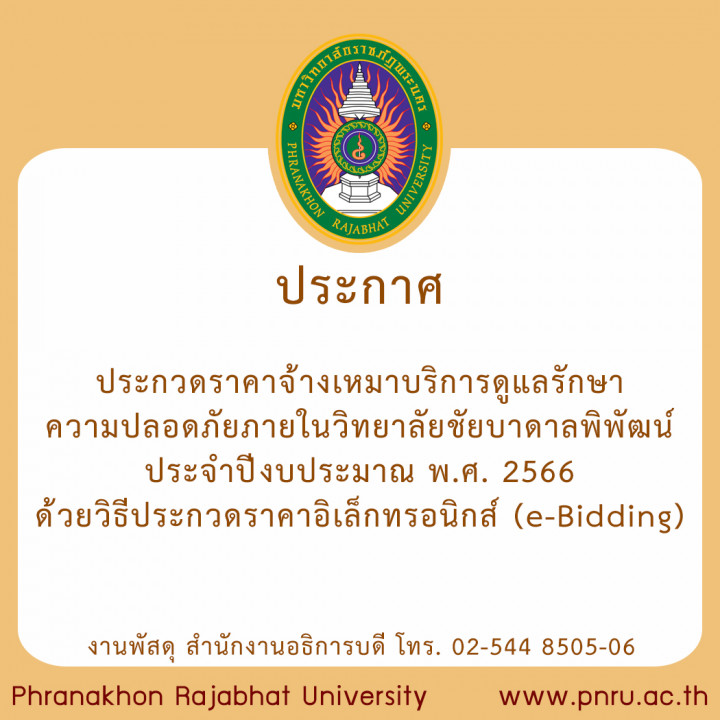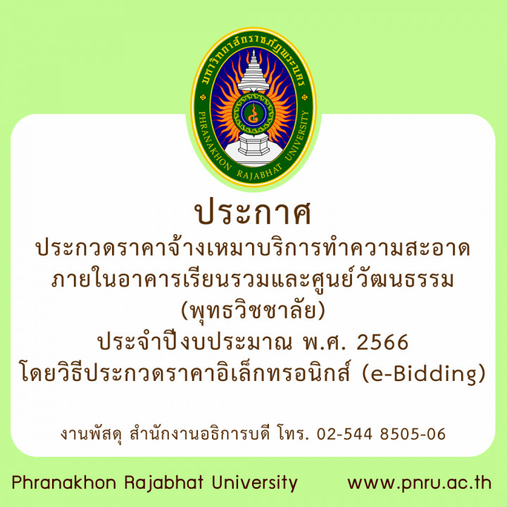 ประกาศมหาวิทยาลัยราชภัฏพระนคร เรื่อง ยกเลิกประกาศประกวดราคาจ้างเหมาบริการทำความสะอาด โครงการอาคารฝึกประสบการณ์วิชาชีพพระนครแกรนด์วิว ประจำปีงบประมาณ พ.ศ. 2566 ด้วยวิธีประกวดราคาอิเล็กทรอนิกส์ (e-Bidding)