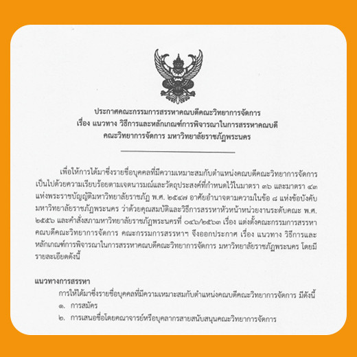 ประกาศ มติสภามหาวิทยาลัยราชภัฏพระนคร ครั้งที่ 19/2565 วาระที่ 5.5 ผลการประเมินผลงานทางวิชาการ เพื่อกำหนดตำแหน่งทางวิชาการ